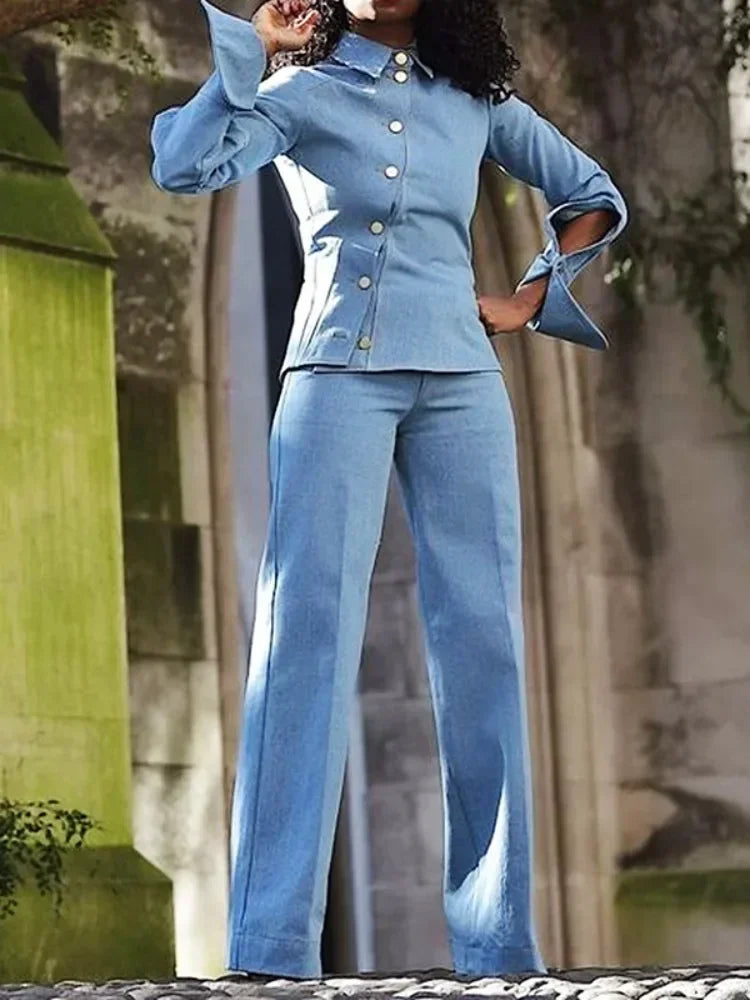 Beautyblue Women's Straight Trousers Blue Pants Casual 2025 New Spring High Waist Pure Cotton Female Bottom for Office Commute