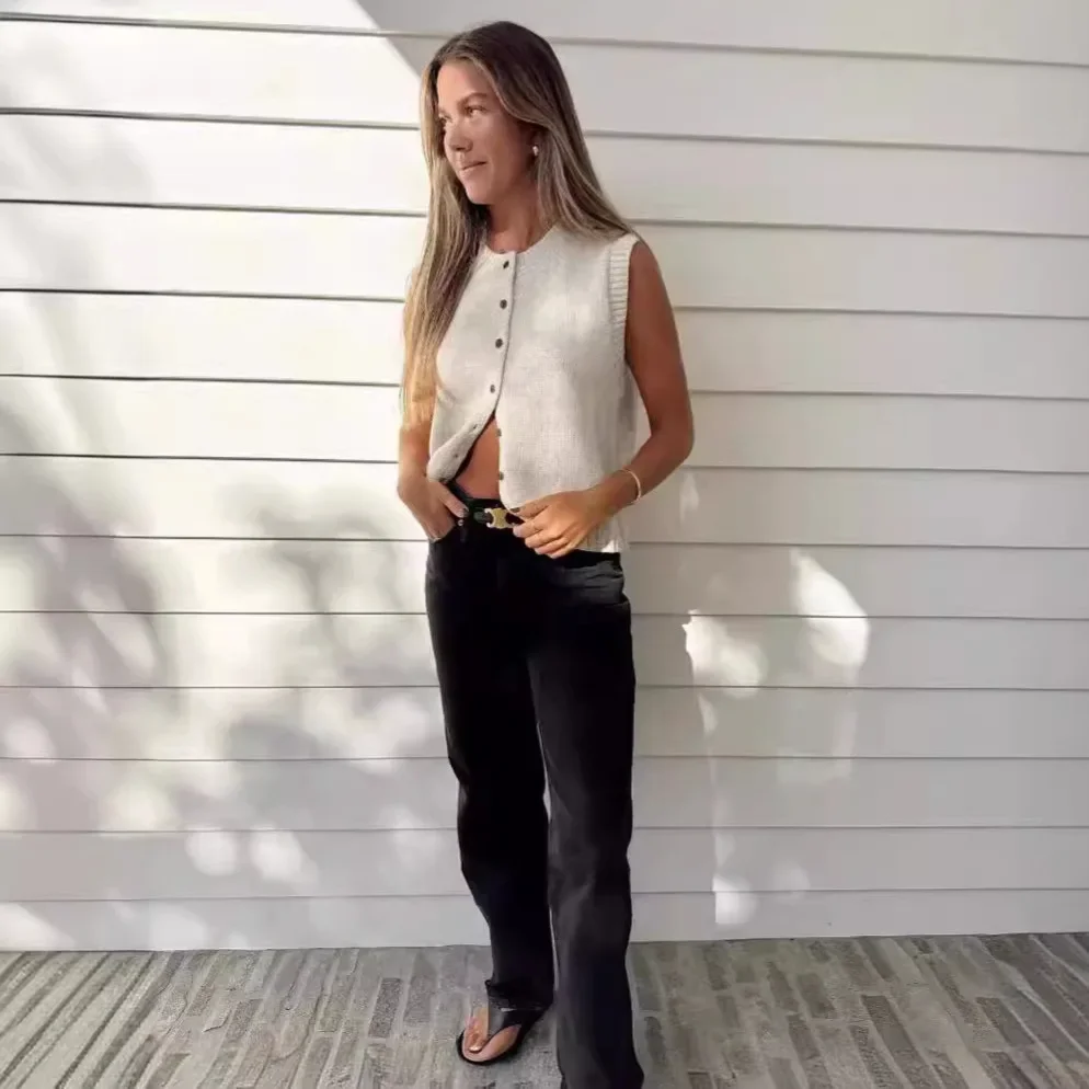 Knitted Vests Top For Women Casual Single-Breasted Knitwear Cardigan Tank Sweater Female Solid Sleeveless 2024 Fashion