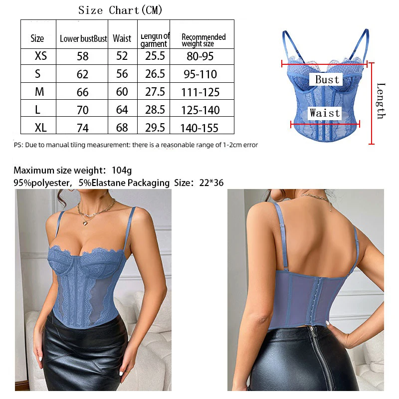 Women Lace Corset Tops Sexy Sheer Mesh Spaghetti Strap Fishbone Summer Bustier Top Y2K Going Out Night Club Party Concert Tops