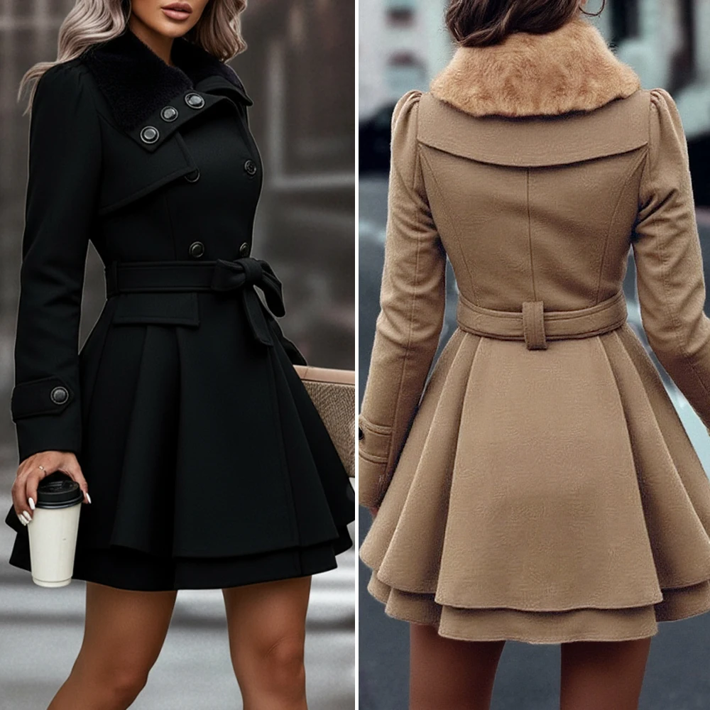 Women's Trench Coats 2025 Winter Essential Solid Color Notched Lapel Mid-Length Open Front Long Sleeve Double-Breasted Coats